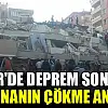Deprem sonrası vatandaşlar korku içerisinde evlerini terk etmeye başlarken, bir binanın yıkıldığı an kameralara yansıdı.