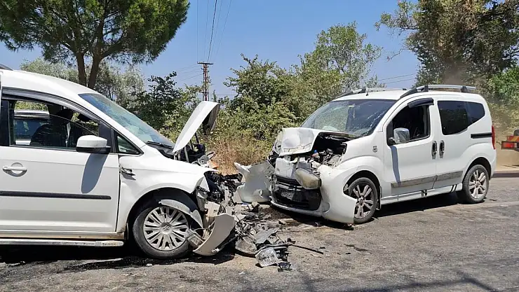 İzmir'in Tire ilçesinde, 2 hafif ticari aracın kafa kafaya çarpışması sonucu 1'i ağır 10 kişi yaralandı.
