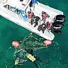 Operasyonda kaçak avcılar tarafından kullanılan ve 20 metre derinliğe gizlenen trol ve algarna sistemini oluşturan ağ düzeneği 4 saat süren çalışma sonunda kurbağa adamlar tarafından Ege Üniversitesi Su Ürünleri Fakültesine ait gemiye çıkarıldı.