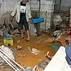 İzmir'deki kuvvetli sağanağın ardından ev ve iş yerlerini su basan vatandaşlar temizlik yapıyor.