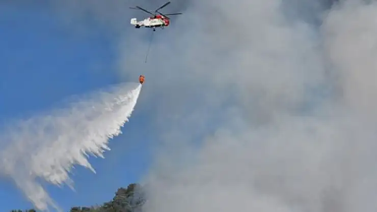 İhbar üzerine bölgeye İzmir Orman Bölge Müdürlüğüne bağlı 2 yangın söndürme helikopteri ile 4 arazöz sevk edildi.