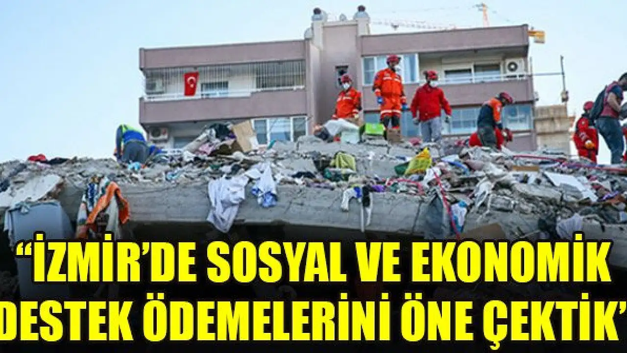 Aile, Çalışma ve Sosyal Hizmetler Bakanı Zehra Zümrüt Selçuk, İzmir'deki deprem nedeniyle Sosyal ve Ekonomik Destek Hizmeti alan ailelerin ihtiyaçlarını karşılayabilmesi için ödemeleri öne çektiklerini açıkladı.