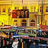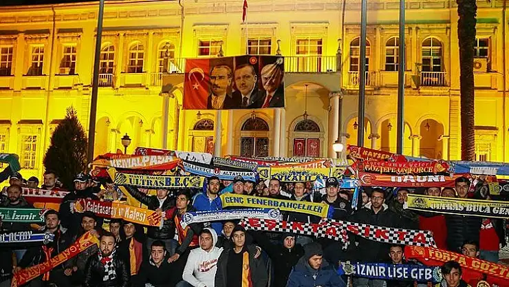 Konak metro istasyonu önünde, Göztepe, Karşıyaka, Altay, Altınordu, Galatasaray, Beşiktaş, Fenerbahçe ve Anadolu takımlarının taraftar grupları bir araya geldi.