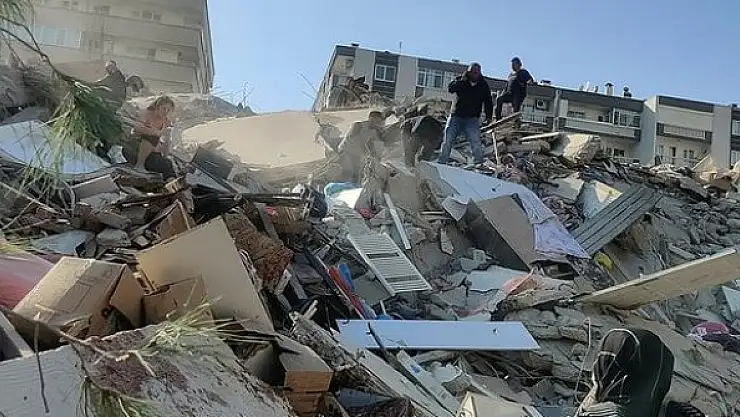 İzmir'in Bayraklı ilçesinde deprem nedeniyle çöken bir binada arama kurtarma çalışması başlatıldı.