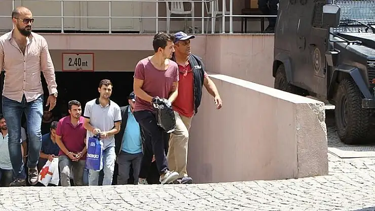 FETÖ'nün darbe girişimi soruşturmasında gözaltına alınan 23 asker ile soruşturma kapsamında Adnan Menderes Havalimanında yakalanan ABD vatandaşı 2 Türk, adliyeye sevk edildi.