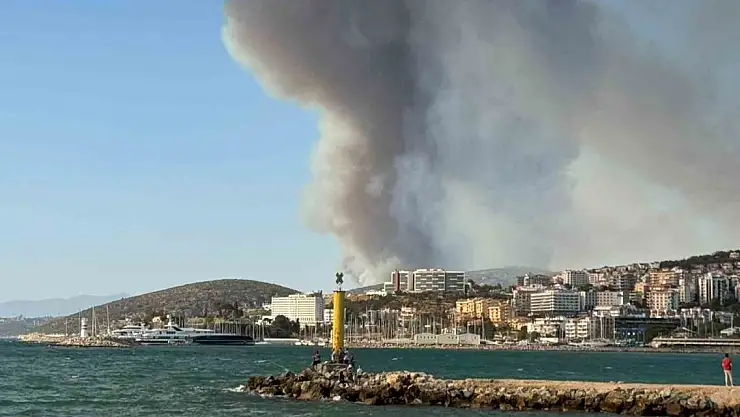 İzmir'deki orman yangını Kuşadası'nı duman bulutuna boğdu
