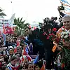 Karşılama töreninde partililerin açtığı "Adamın hası Binali, diğerleri Cinali", "İzmir artık çift kale. Binali 3-0 önde", "Rahat ol büyük usta, Yolların kralı yanımızda" pankartları dikkati çekti.
