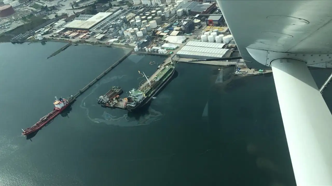 Bir limanda demirli Marshall Adaları bandıralı "Roadrunner" adlı kuru yük gemisinden denize petrol türevi madde sızdığı tespit edildi.