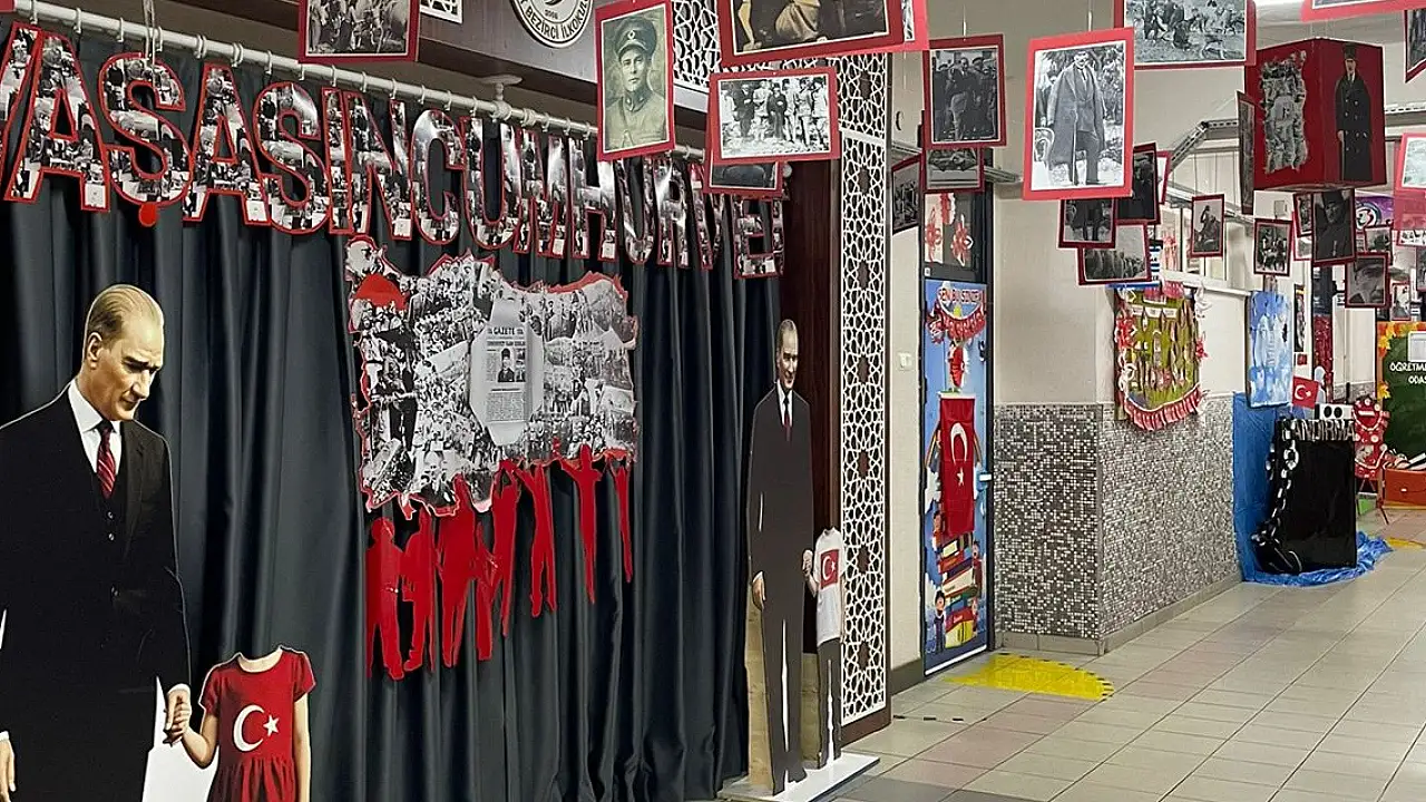 Karatay ilçesinde bulunan İzzet Bezirci İlkokulu'nda 29 Ekim Cumhuriyet Bayramı ve 10 Kasım Atatürk'ü Anma Günü dolayısıyla düzenlenen etkinlikler kapsamında Atatürk ve Cumhuriyet sokağı oluşturuldu.