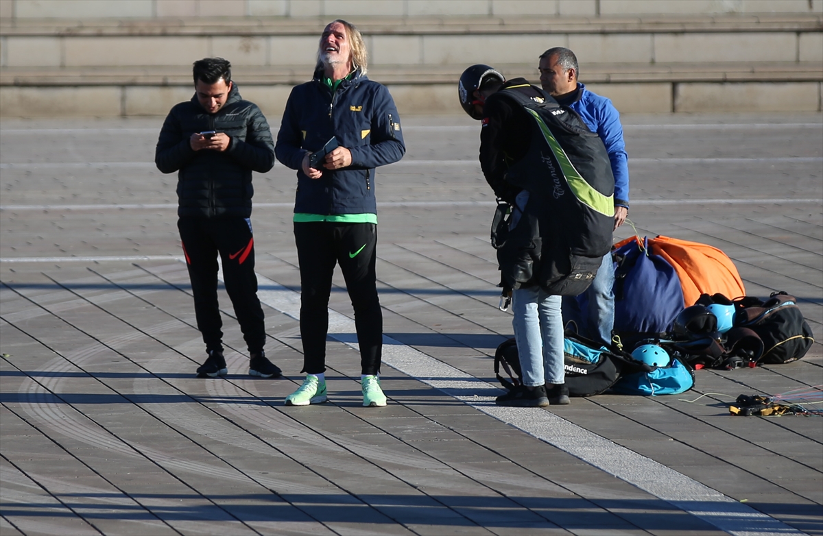Galatasaray'ın eski teknik direktörlerinden Riekerink, paraşüt pilotu İlker Özgüven ile Amanos Dağları'na çıktı.
