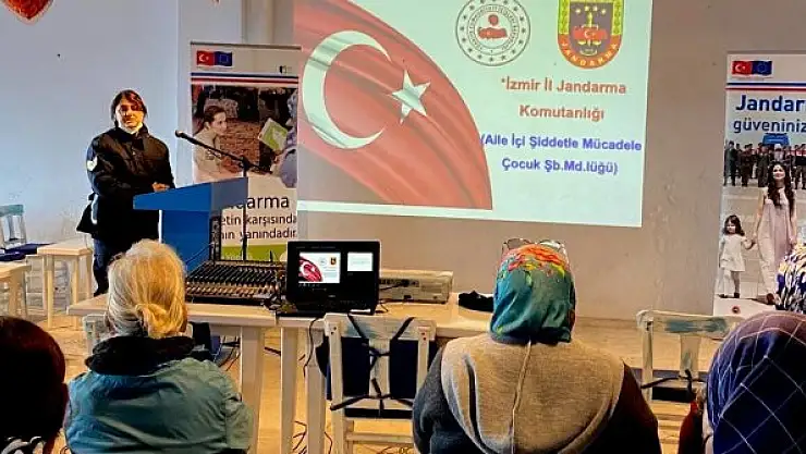 İzmir'de jandarma ekipleri, Çeşme'nin Ildır Mahallesi'ndeki kadınları, kadına karşı şiddetin önlenmesi ve uyuşturucu ile mücadele konusunda bilgilendirdi.