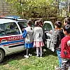Trafik ekipleri, daha sonra okul önünde bulunan karayolunda uygulamalı olarak öğrencilere karşıdan karşıya geçmeyi öğretti.