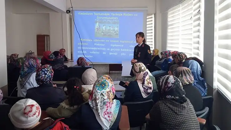 Konya'nın Sarayönü ilçesinde, İl Jandarma Komutanlığınca kadınlara yönelik seminer düzenlendi.