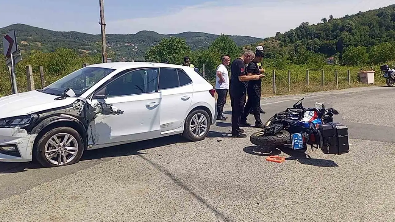 Zonguldak'ın Çaycuma ilçesinde jandarmaya ait motosikletle otomobilin çarpışması sonucu meydana gelen kaza maddi hasarla atlatıldı.