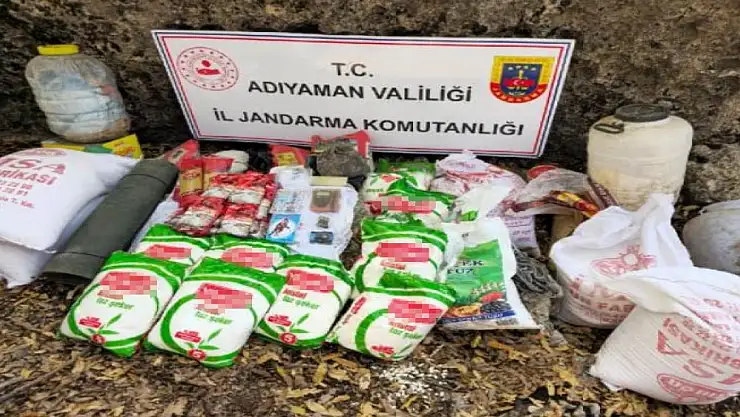 Adıyaman'ın Gerger ilçesinde, jandarmanın düzenlediği operasyonda PKK'lı teröristlere ait toprağa gömülü yaşam malzemeleri ele geçirildi.