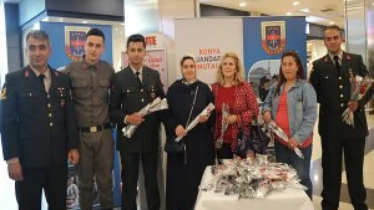 Konya İl Jandarma Komutanlığı personeli, bir alışveriş merkezinde 'Anneler Günü' dolayısıyla 12 bin karanfil dağıttı.