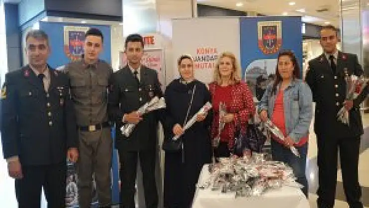 Kule AVM iş birliğinde gerçekleşen etkinlikte, jandarmalar alışveriş merkezine gelen anneleri karanfille karşıladı.