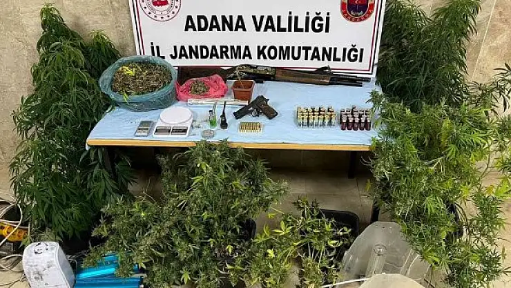 Adana'nın Kozan ilçesinde İl Jandarma Komutanlığı ekipleri ve Kozan İlçe Jandarma Komutanlığı ekipleri Arslanpaşa Mahallesi'nde evinde uyuşturucu yetiştirdiği değerlendirilen M.B.'nin (24) evine operasyon düzenledi. Kozan Cumhuriyet Başsavcılığı talimatı ve emniyet destekli gerçekleşen jandarma operasyonunda saksılarda 8 kök skunk bitkisi, 544 gram esrar, 2 hassas terazi, dijital termometre, tabanca, şarjör, ruhsatsız av tüfeği, iklimlendirme sistemi fişekler ele geçirildi. Jandarma ekiplerinin gözaltına aldığı şüpheli M.B., adli işlemlerin ardından çıkarıldığı Adana Adliyesi'nde tutuklanarak cezaevine gönderildi.