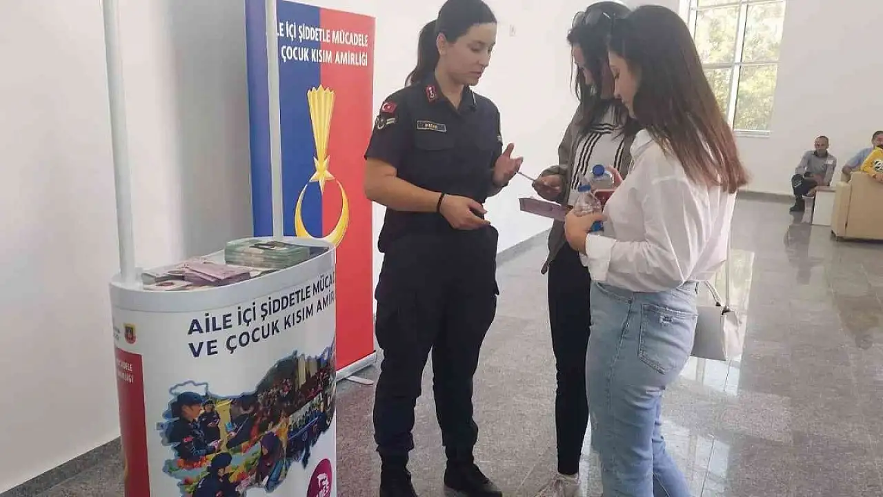 Antalya İl Jandarma Komutanlığı ekipleri öğrencilere ve üniversite personeline "Kadına El Kalkamaz" sloganıyla bilgilendirme yaptı