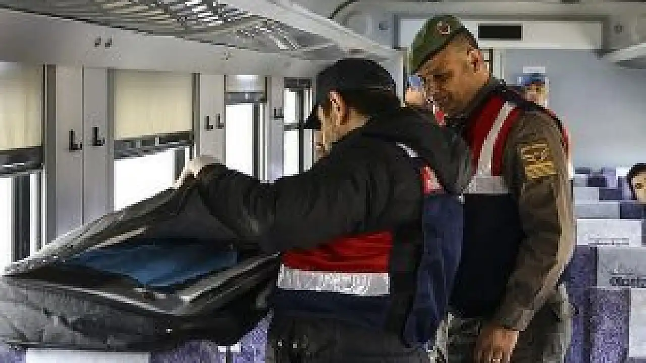 Elmadağ'da trene binen 100 kişilik jandarma ekibi, "Haylaz" ve "Cesur" adlı bomba arama ve narkotik köpeklerinin de kullanıldığı uygulamada yaklaşık 250 yolcunun kimlik ve bagajlarını kontrol etti.