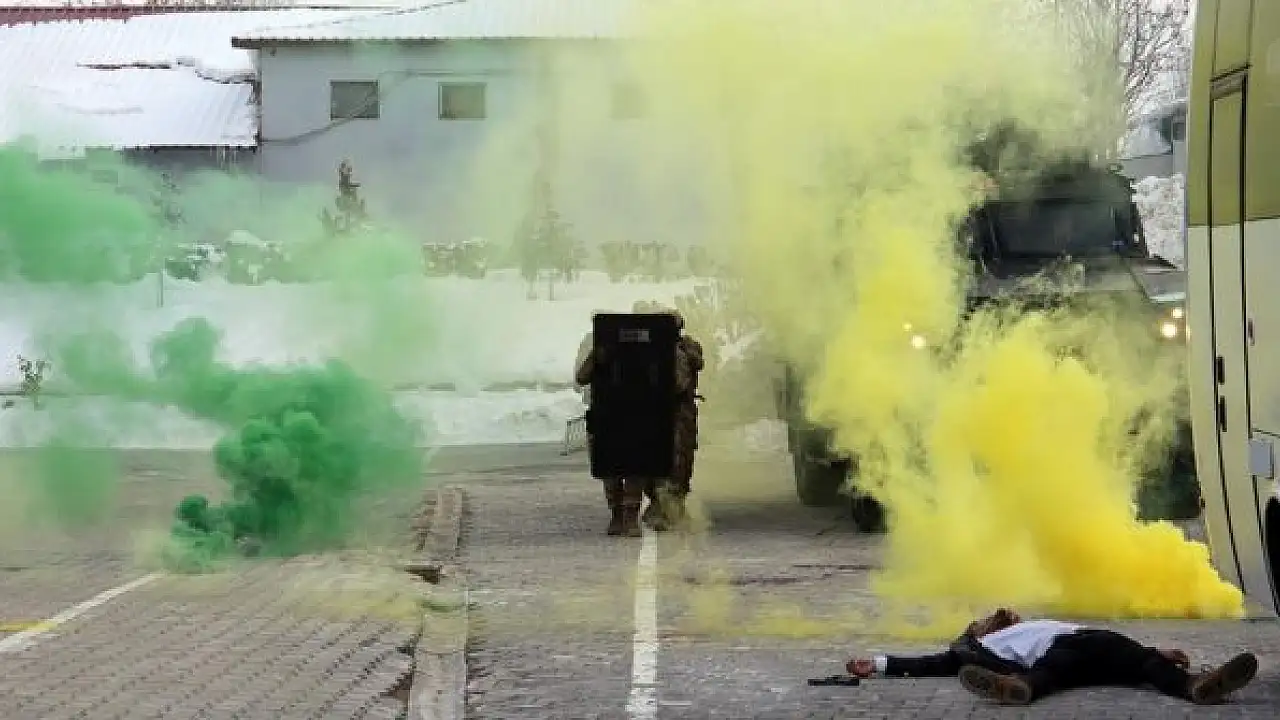 Jandarma Özel Harekat Tabur Komutanlığı ekipleri de terör unsurlarınca bir otobüste alıkonulan rehineleri kurtarmak için operasyon düzenledi. Sis bombalarının da kullanıldığı tatbikatta, otobüse nefes kesen operasyon düzenleyen JÖH'ler, teröristleri etkisiz hale getirerek, rehineleri başarılı bir şekilde tahliye etti.