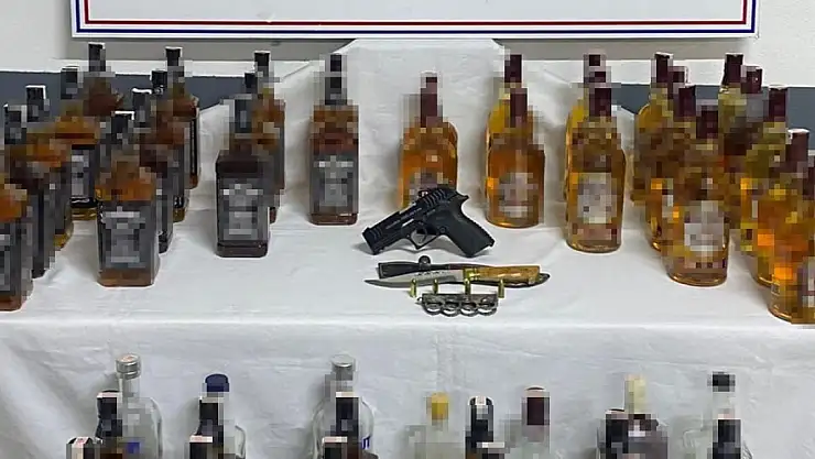 Antalya İl Jandarma Komutanlığı Kaçakçılık ve Organize Suçlarla Mücadele Şube Müdürlüğü, Manavgat ilçesi Sarılar Mahallesi'nde ikamet eden Ö.K. isimli şahsın kaçak/sahte alkol sattığının tespit edilmesi üzerine Sarılar Jandarma Karakol Komutanlığı Asayiş ekipleri, Manavgat Kaçakçılık ve Organize Suçlarla Mücadele timi ile birlikte şüpheli şahısın kullanmış olduğu araç ve eve yönelik operasyon başlattı. Yapılan operasyonda 62 adet şişelenmiş sahte içki, 1 adet tabanca, 1 adet bıçak ve 4 adet 9 mm tabanca mermisi ele geçirildi.