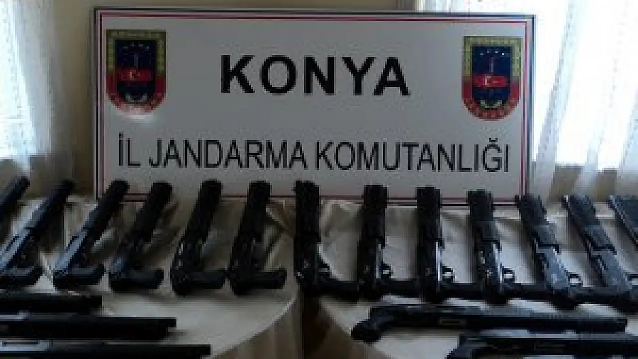 Konya'da bir aracın bagaj kısmında 21 adet ruhsatsız av tüfeği bulundu.