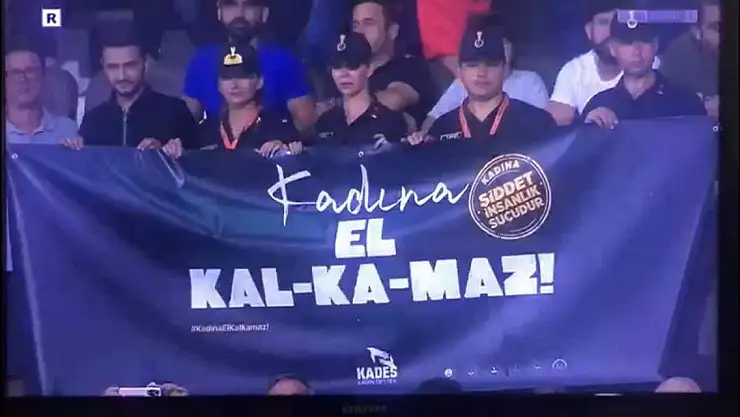 Jandarmadan stadyumda, 'Kadına El Kalkamaz' pankartı