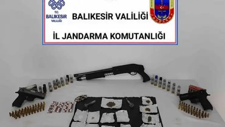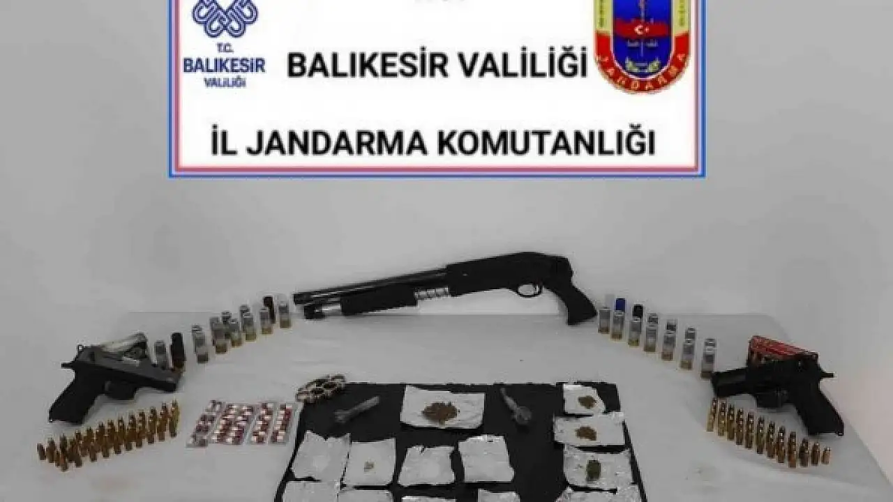 12 farklı adreste 10 şüpheliye eş zamanlı yapılan operasyonda 115 gram metamfetamin, 40 gram kubar esrar, 18 gram kenevir tohumu, 55 adet sentetik uyuşturucu hap, 2 adet uyuşturucu kullanma aparatı ele geçirildi. İkametlerde yapılan aramalarda ayrıca 2 adet tabanca, 1 adet av tüfeği, 112 adet fişek, 2 adet şarjör ve 1 adet de hassas terazi bulundu. Yapılan aramalar neticesinde 9 şüpheli yakalanırken, 1 firari şüphelinin yakalanması için çalışmaların devam ettiği bildirildi. Balıkesir İl Jandarma Komutanlığı emniyet, asayiş ve kamu düzeninin sağlanmasına yönelik çalışmaların aralıksız olarak devam edeceğini de duyurdu.