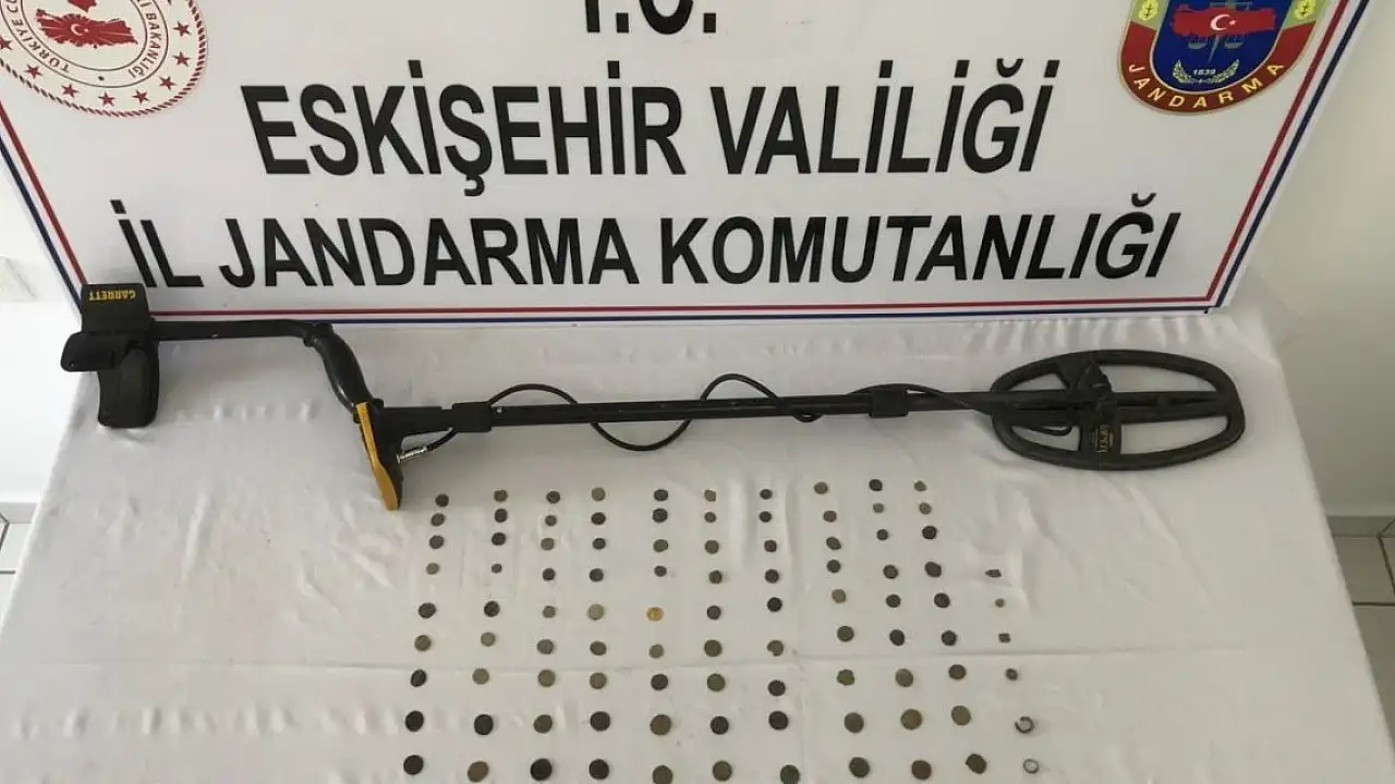 Eskişehir'in İnönü ilçesinde tarihi eser kaçakçısı olduğundan şüphelenilen şahıs 107 adet tarihi eser niteliğinde sikke ve 1 adet metal detektörüyle yakalandı.