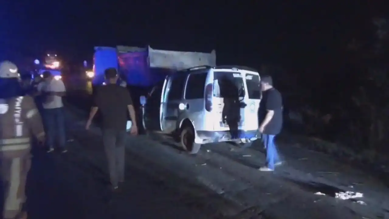 Arıza nedeniyle emniyet şeridinde duran hafriyat kamyonuna arkadan gelen hafif ticari araç çarptı.
