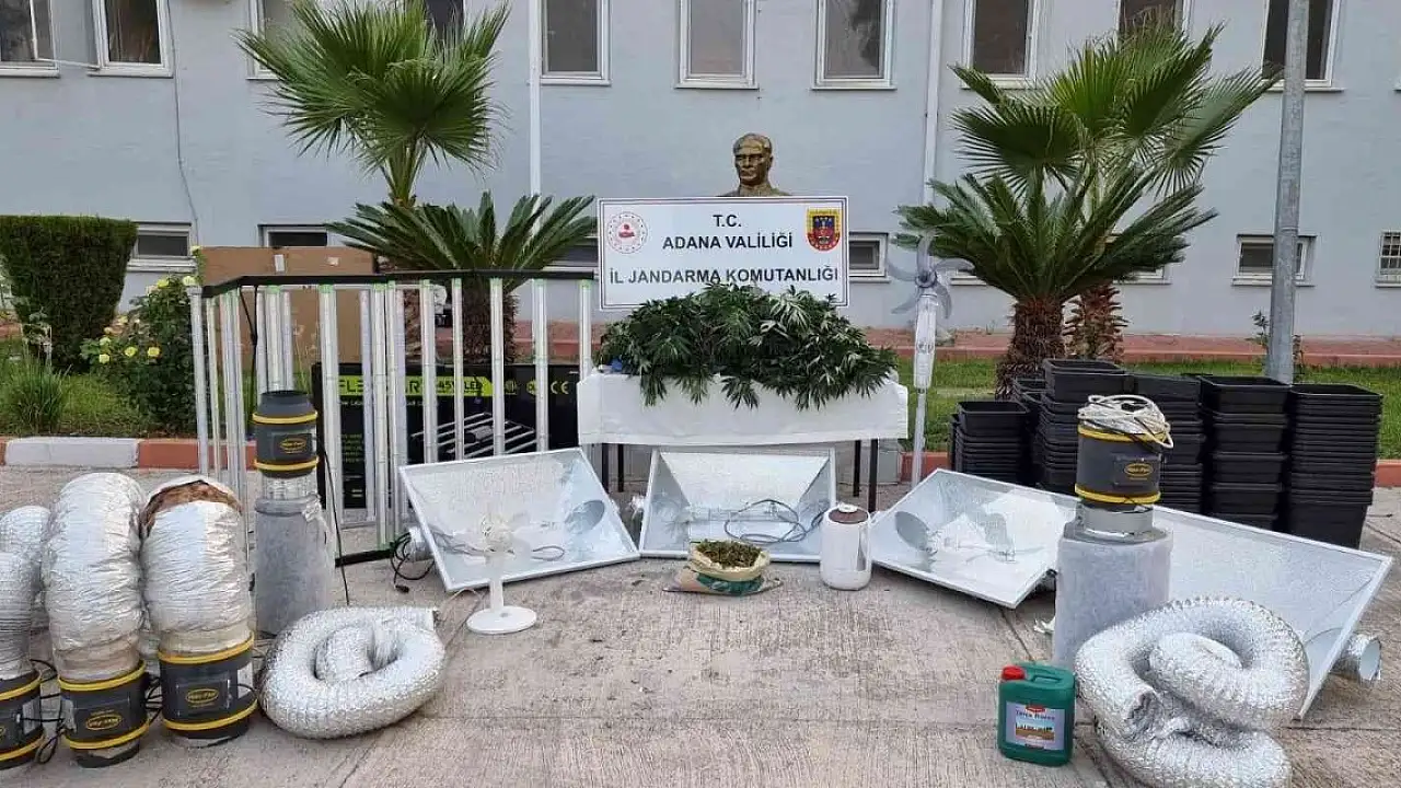 Adana İl Jandarma Komutanlığı ekipleri, Karataş ilçesinde U.B. isimli şahsın evinde kenevir bitkisi yetiştirdiği ihbarı üzerine baskın düzenledi. Baskında üç oda içerisinde iklimlendirme sistemi kullanılarak saksılara ekili 82 kök kenevir ile 1 kilo 152 gram esrar ele geçirildi.