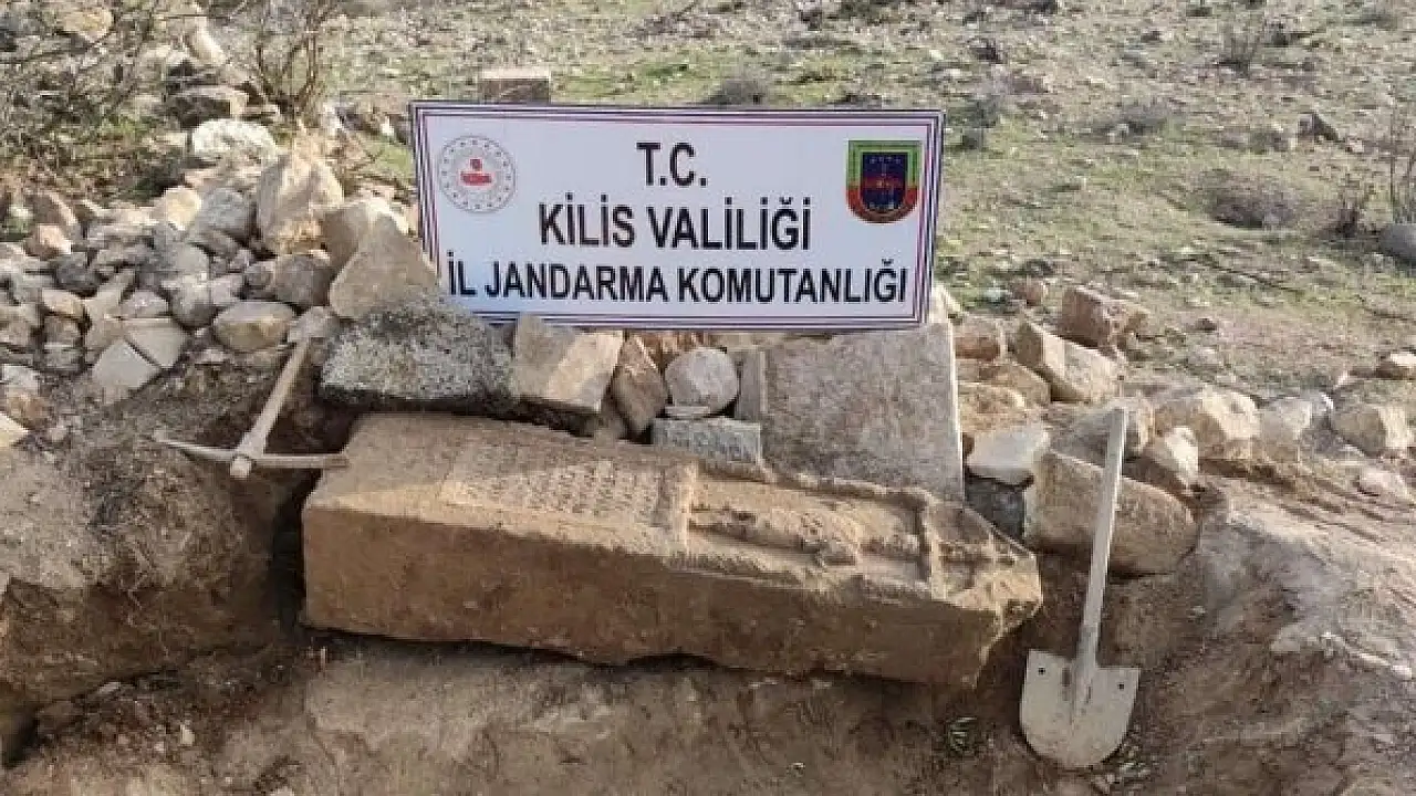 Kilis'te jandarma, bir kişiyi kaçak kazı yaptığı esnada Roma dönemine ait mezar steli ile birlikte suçüstü yakaladı.
