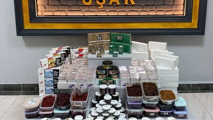 Uşak'ta KOM ekiplerinin şehir merkezinde kaçak sigara ve tütün sattığı iddia edilen iş yerinde yapılan aramada, yüksek miktarda kaçak ütün ele geçirildi.