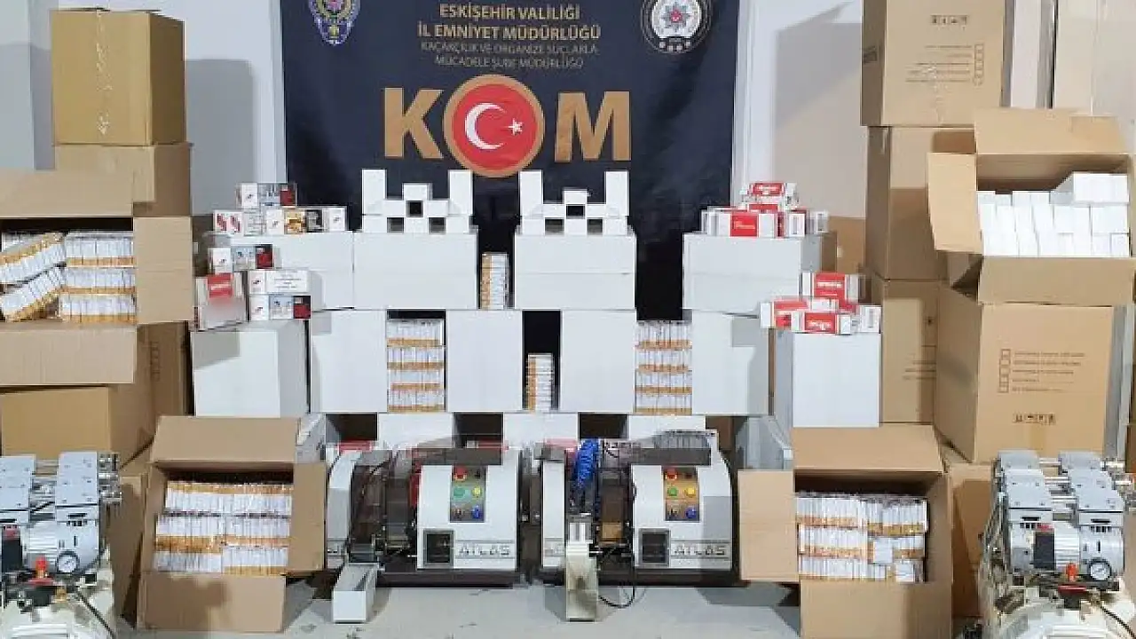 Edinilen bilgiye göre, Eskişehir Emniyet Müdürlüğüne bağlı Kaçakçılık ve Organize Suçlarla Mücadele (KOM) Şube Müdürlüğünce devletin vergi kaybının önlenmesi, haksız kazancın engellenmesi ve halk sağlığının korunması amacı ile kaçak tütün ve tütün mamullerini piyasaya sürmeye çalışan şahıslara yönelik operasyon yapıldı. Yapılan çalışmalar çerçevesinde, 1 iş yeri, 4 ikamet ve 2 araçta yapılan aramalarda; 538 bin dal makaron, 91 bin 700 dal sarılmış sigara, 225 kilogram tütün, 4 adet elektrikli ve kompresörlü sigara sarma makinesi ele geçirilirken, 7 şahıs yakalandı.