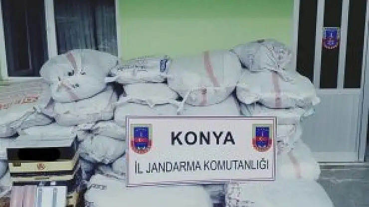 Konya İl Jandarma Komutanlığı ekipleri, bir kamyonette yaptığı aramada kaçak tütün, çay ve sigara ele geçirdi.
