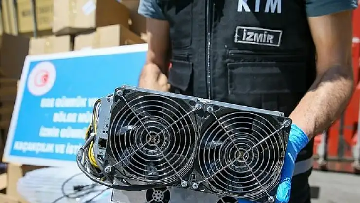 İzmir'in Karabağlar ilçesinde yasa dışı yollarla ülkeye sokulduğu belirlenen 501 kripto para üretim makinesi ele geçirildi.