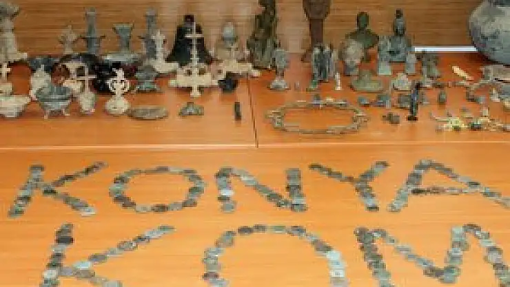 Konya'da, kaçakçılık polisi tarafından bir evde yapılan aramada, Roma, Bizans ve Selçuklu dönemine ait 2 bin 655 tarihi eser ele geçirildi.