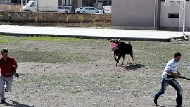 Alınan bilgiye göre, Ata Sanayi'de bir dükkanda kesilmek istenen kurbanlık boğa, boynuna bağlanan zinciri kırarak kaçtı. Şehir trafiğine giren ve bir dükkanın camını kıran gözü bağlı boğa, yaklaşık 1 kilometre uzaklıktaki Kongre Lisesi bahçesine duvardan atlayarak, girdi.