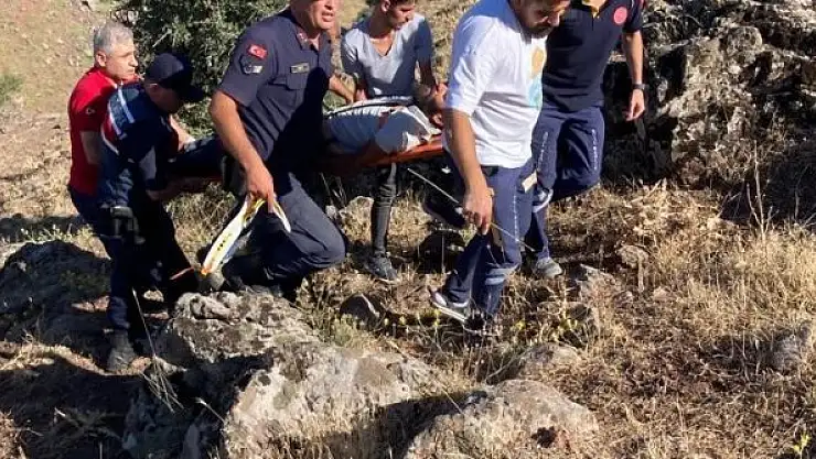 Elazığ'da merkeze bağlı Gümüşbağlar köyünde kaçan kurbanlık keçiyi yakalamak isterken kayalıklardan aşağı yuvarlanan yaralı şahıs UMKE ve jandarma ekipleri tarafından kurtarıldı.