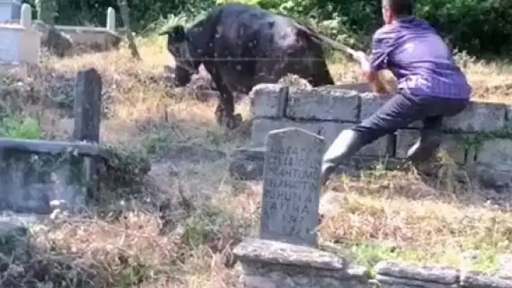 Kurbanlık kesimi sırasında bir inek sahibinin elinden kurtularak kaçmaya başladı. Kaçan ineği yakalamak için çevredeki vatandaşlar seferber oldu. İlçe mezarlığında sıkıştırılan ineği vatandaşlar kuyruğundan tutarak durdurmaya çalıştı. Kurbanlık, hayvan sahibi tarafından bölgeye çağırılan Veteriner Hekim Özlem Çınar'ın müdahalesi ile sakinleştirildi. Sakinleştirilen kurbanlık daha sonra kesimhaneye götürüldü. Kaçan ineği yakalama anları ise cep telefonu kamerasıyla görüntülendi.
