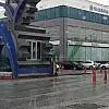 Konya'da sanayi sitesinden izinsiz hurda toplayan şahsın kullandığı aracı durdurmak için bariyerle yolu kapatmak isteyen güvenlik görevlisinin yere düşerek aracın altında kalmaktan son anda kurtulduğu anlar güvenlik kamerasına yansıdı.