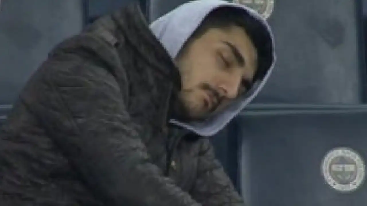 Maçın son saniyelerinde uyuya kalan sarı lacivertli taraftar, maçın bitiş düdüğü ile beraber uyandı ve takımı alkışladı.