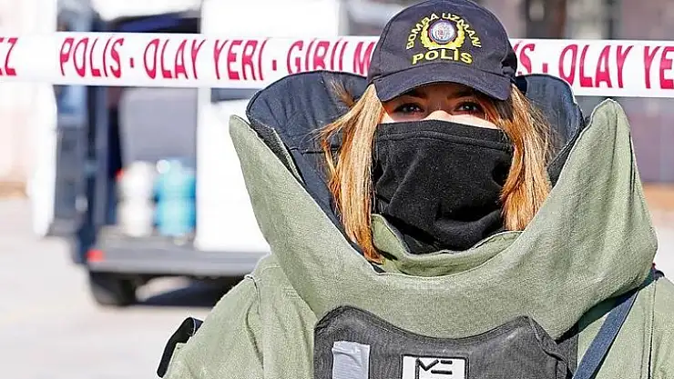 İzmir Bomba İmha ve İnceleme Şube Müdürlüğünde görevli Türkiye'nin tek rütbeli kadın bomba imha uzmanı D.K, kendi kilosunun yarısından fazla ağırlıktaki görev üniformasıyla tehlikeden tehlikeye koşuyor.