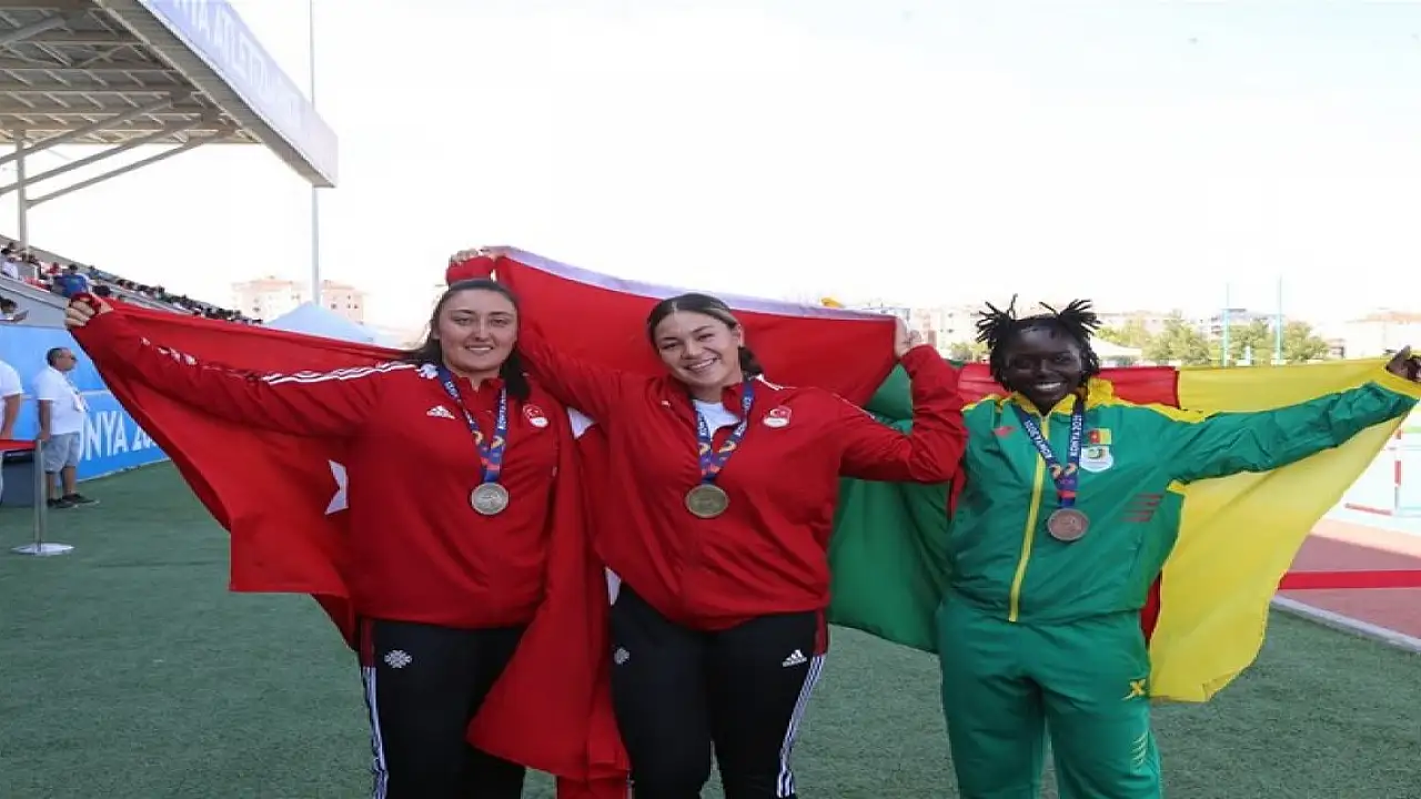 Konya'da devam eden 5'inci İslami Dayanışma Oyunları'nda kadınlar disk atmada madalya töreni yapıldı.