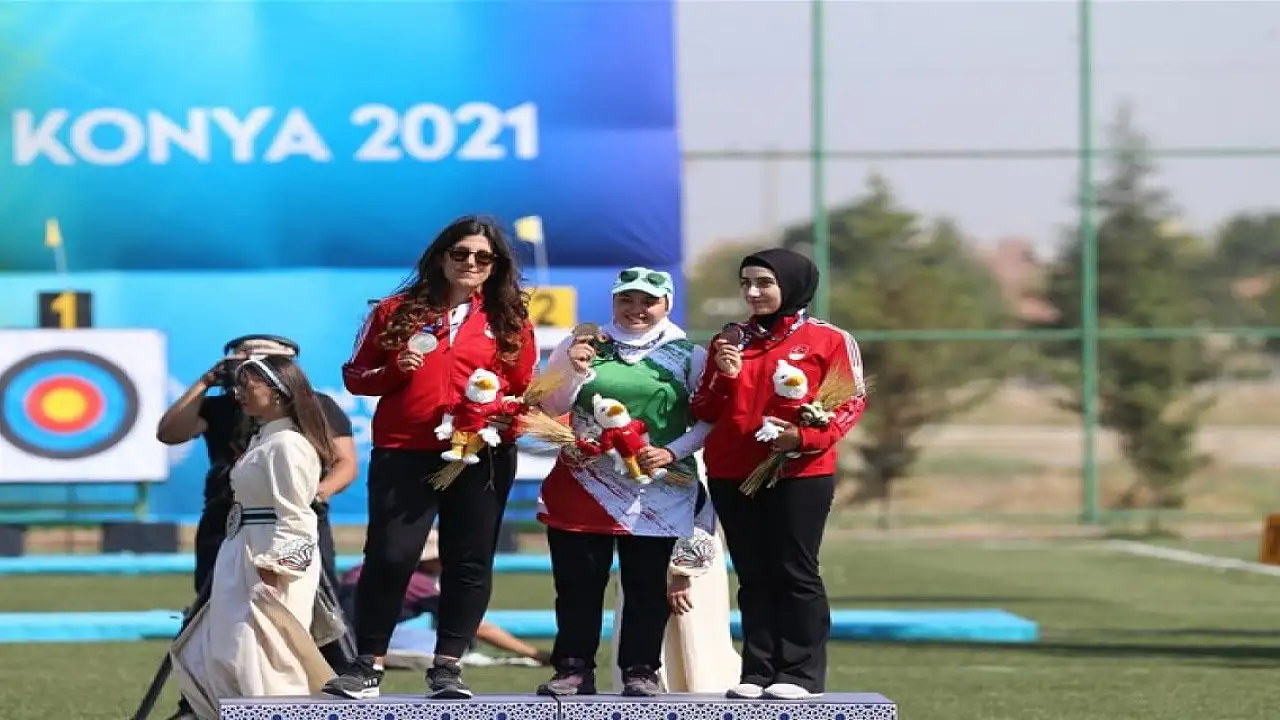 Konya'da son gününe gelinen 5'inci İslami Dayanışma Oyunları'nda kadınlar okçuluk bireysel makaralı yay yarışmalarında altın madalya İranlı sporcu Bybordy Geesa'nın oldu.