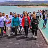 Van Gölü Aktivistleri Derneği öncülüğünde düzenlenen etkinlikte, kadınlar göle dikkati çekmek ve gelecek nesillere daha temiz bırakılmasını sağlamak amacıyla gölün çevresindeki 430 kilometrelik yolu yürümeye başladı.