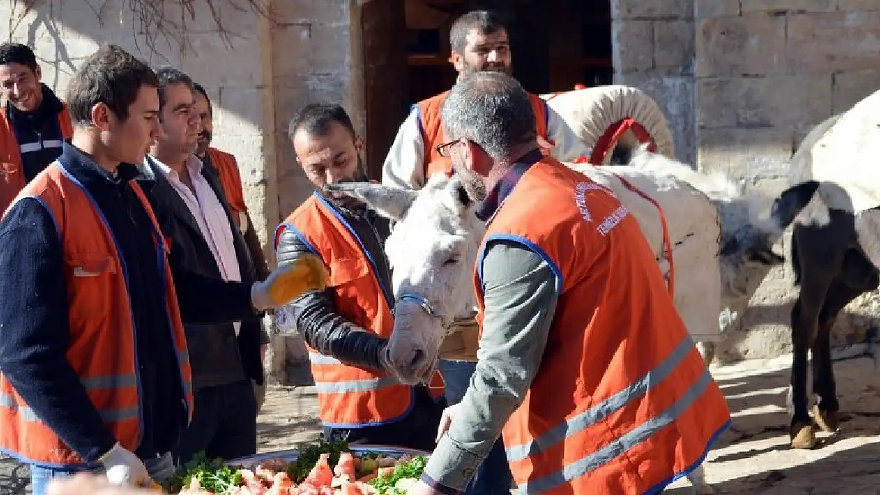 Mardin'de sokakların dar ve merdivenli olması nedeniyle çöplerin toplanmasında kullanılan 43 kadrolu eşekten çalışma süresi 8 yılı aşan 3 eşek düzenlenen törenle emekliliğe ayrıldı