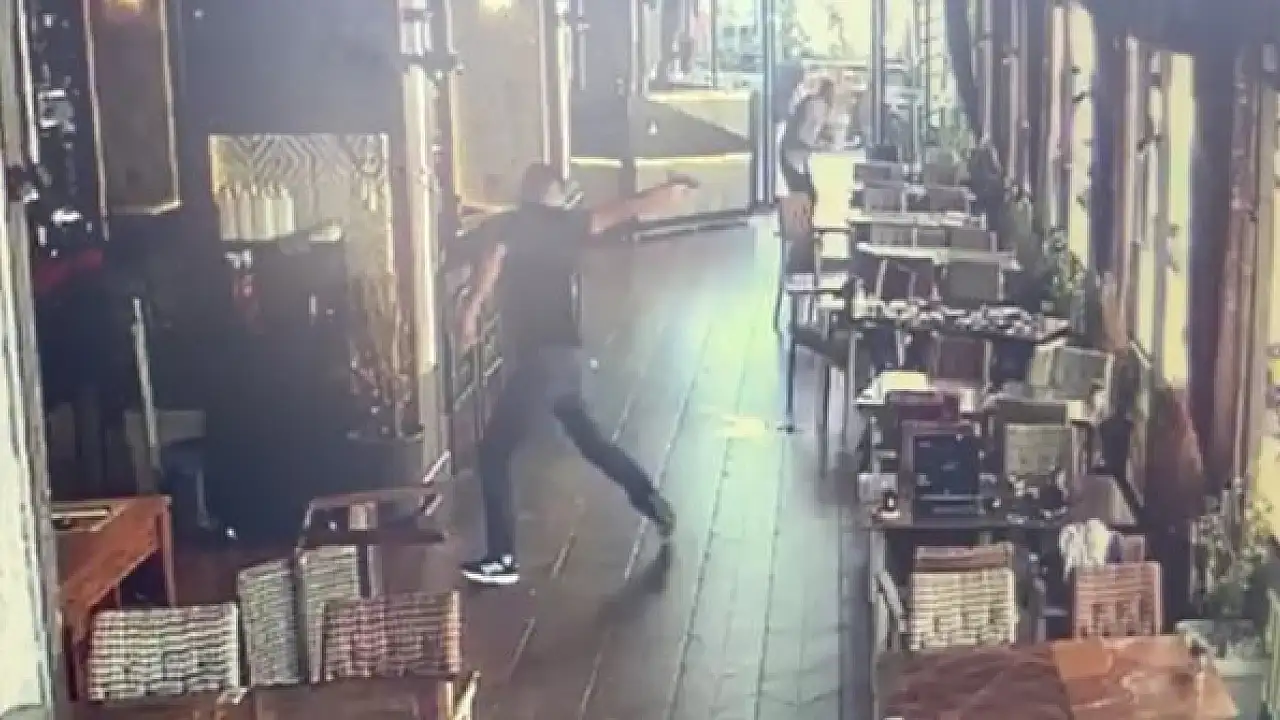 NİĞDE'de, kafede oturan 4 kişilik gruba bir kişi tarafından tabancayla ateş açıldı. Şüpheli kaçarken, saldırıda şans eseri kimseye kurşun isabet etmedi, iş yerinin kırılan camının parçası bir müşterinin kolunu ve bacağını hafif şekilde yaraladı. Olay anı ise güvenlik kamerasına yansıdı.