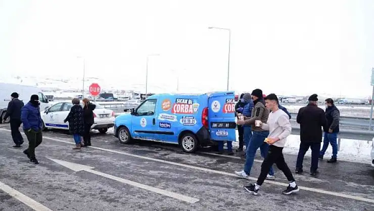 Kahramankazan Belediyesi'nden yolda kalan sürücülere çorba ikramı
